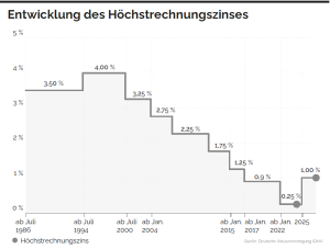 Konsequenterweise münden deutlich steigende Zinsen in eine Anhebung des Höchstrechnungszinses – und zwar auf 1,0% ab 2025. Das ist die erste Erhöhung seit 30 Jahren!