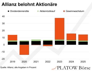 Die Allianz-Aktie hat zuletzt deutlich nachgegeben. Operativ bleibt der Versicherungskonzern jedoch auf Rekordkurs. Hohe Kapitalrenditen, steigende Dividenden und Aktienrückkäufe unterstreichen den anhaltend starken Shareholder Value.